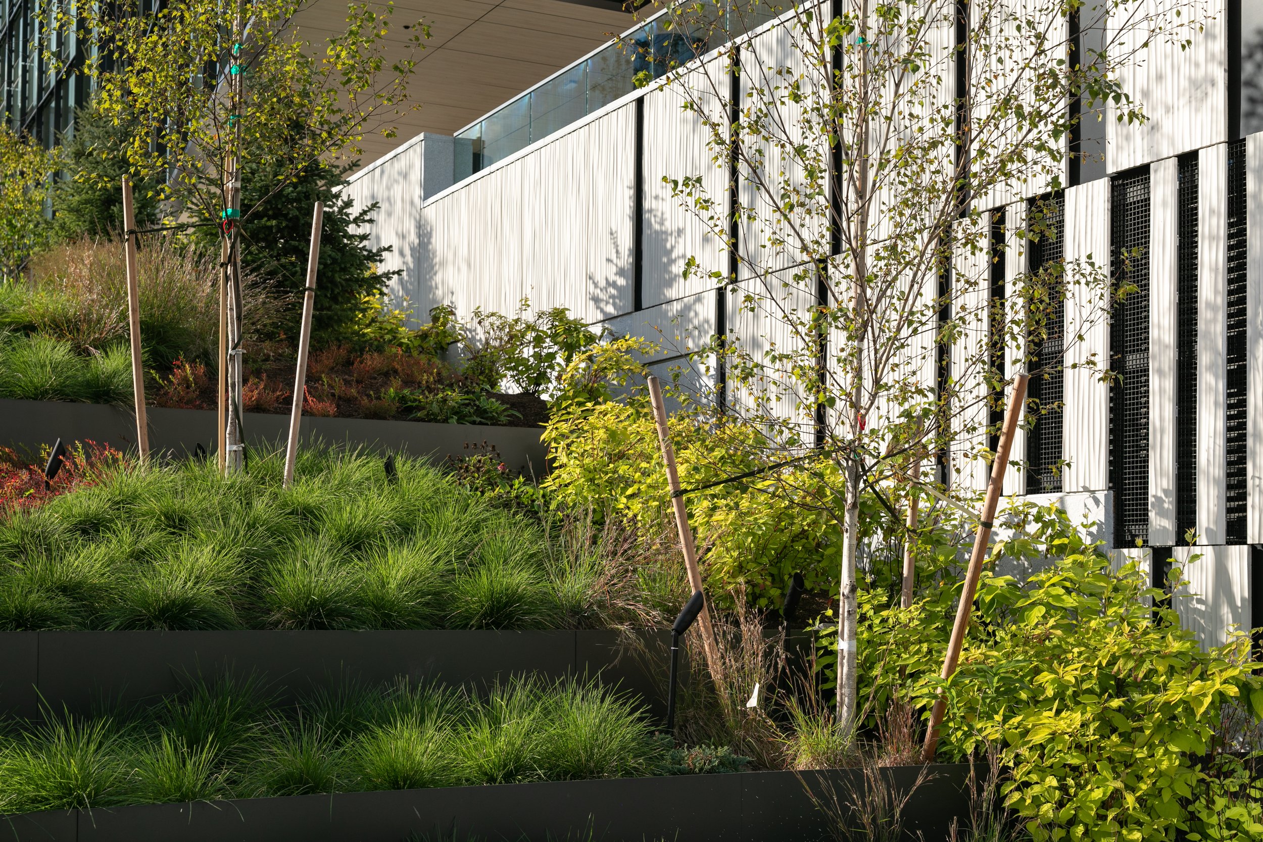 Additionally, the master plan provides extensive privately owned public spaces (POPS) which will range in size and character from heavily planted pocket parks to more urban plazas adjacent to the buildings. A robust network of broad pedestrian sidewalks link the civic spaces and POPS.